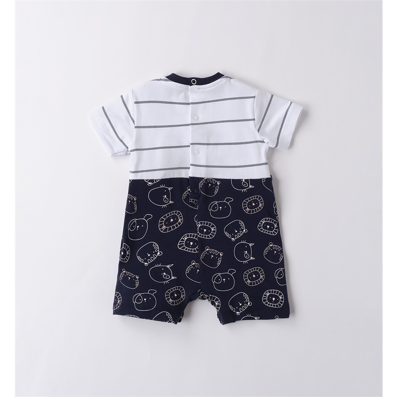 Tutina neonato Minibanda realizzata in jersey stretch di cotone. Il modello è unisex e presenta apertura frontale e nel sottogamba con bottoni a pressione per agevolare il cambio e la vestizione. La tutina è in fantasia tinta unita con dettagli a contrasto.