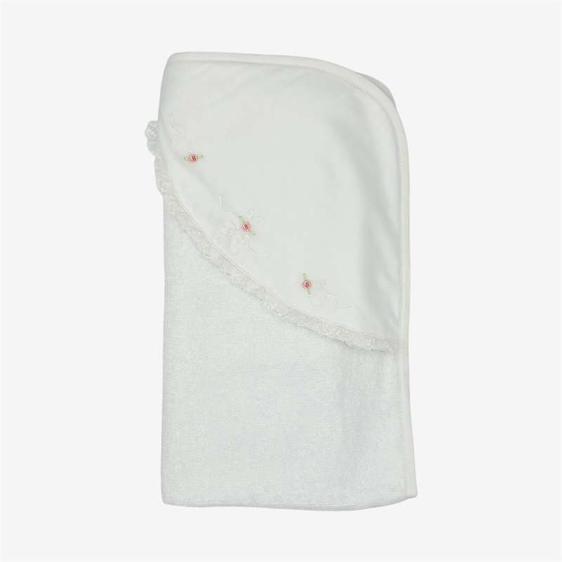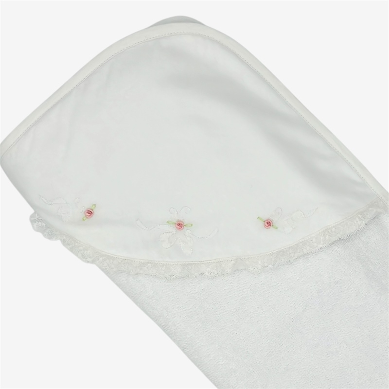 Accappatoio bebè ricamato a mano con roselline punto vapore