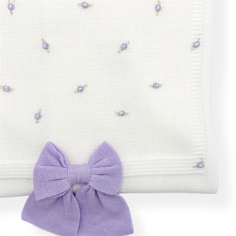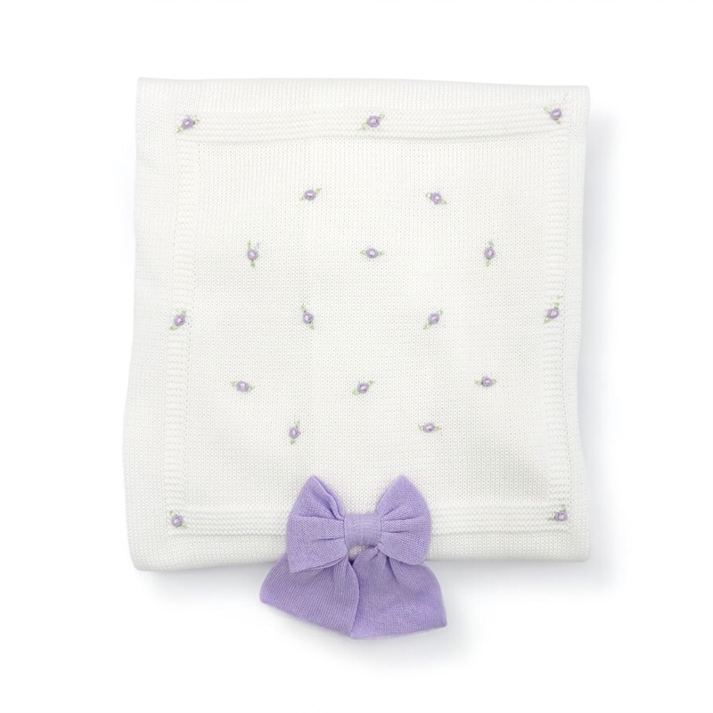 Coperta con fiocco e fiori ricamati a mano punto vapore