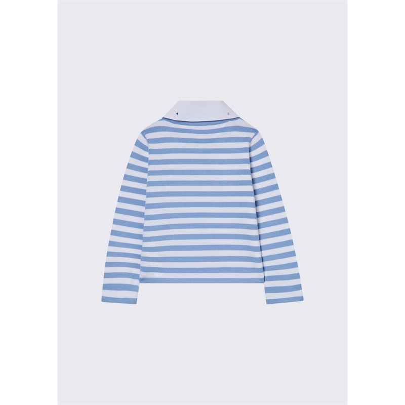 Maglia in jersey di cotone, maniche lunghe a righe con colletto bianco con ricami gioiello.